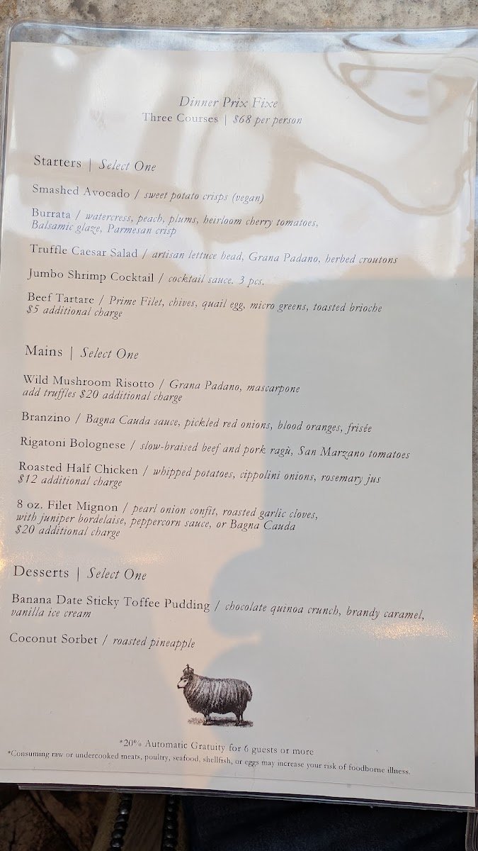- Lunch options include delightful pastas like the Wild Mushroom Risotto and the vegan-friendly Whole Wheat & Sage Gemelli.